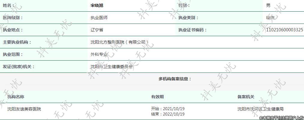 主要執(zhí)業(yè)機(jī)構(gòu):沈陽北方整形醫(yī)院(有限公司)