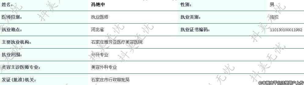 主要執(zhí)業(yè)機(jī)構(gòu):石家莊雅芳亞醫(yī)療美容醫(yī)院
