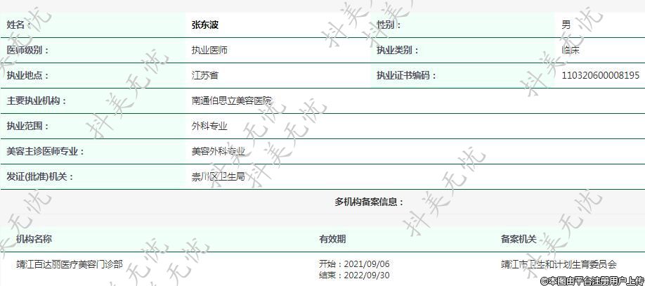 主要執(zhí)業(yè)機構(gòu):南通伯思立美容醫(yī)院