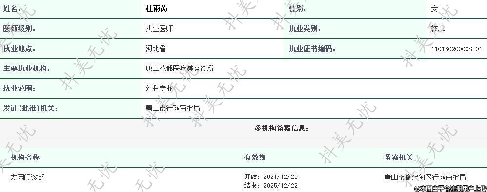主要執(zhí)業(yè)機構(gòu):唐山花都醫(yī)療美容診所