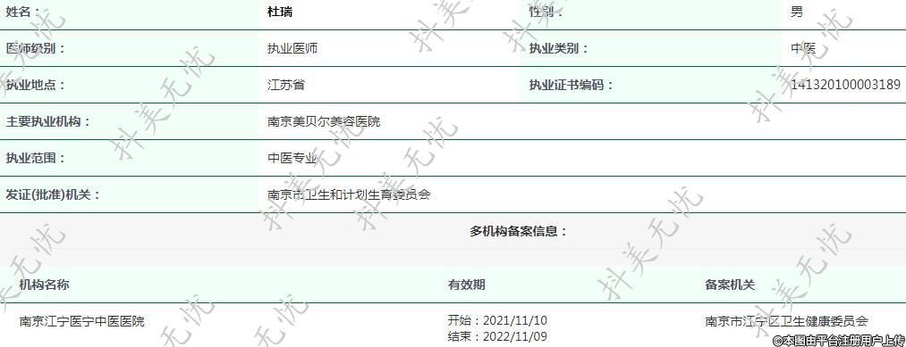 主要執(zhí)業(yè)機構(gòu):南京美貝爾美容醫(yī)院