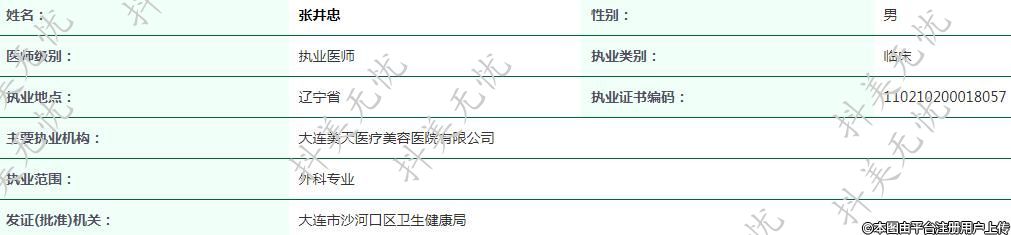 主要執(zhí)業(yè)機(jī)構(gòu):大連美天醫(yī)療美容醫(yī)院有限公司