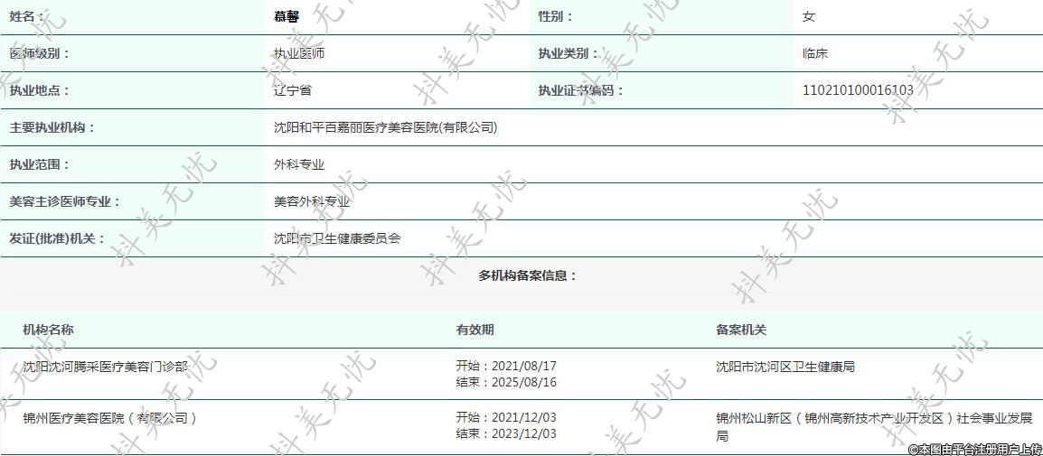 主要執(zhí)業(yè)機(jī)構(gòu):沈陽(yáng)和平百嘉麗醫(yī)療美容醫(yī)院(有限公司)