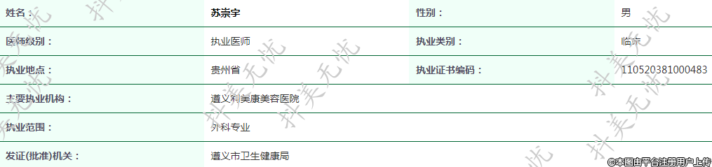 主要執(zhí)業(yè)機(jī)構(gòu):遵義利美康美容醫(yī)院