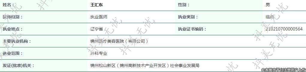 主要執(zhí)業(yè)機構(gòu):錦州醫(yī)療美容醫(yī)院(有限公司)