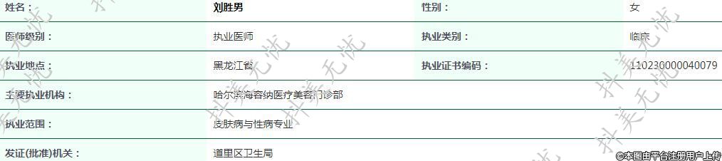 主要執(zhí)業(yè)機(jī)構(gòu):哈爾濱海容納醫(yī)療美容門診部