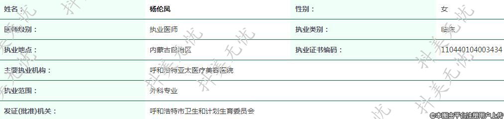 主要執(zhí)業(yè)機構(gòu):呼和浩特亞太醫(yī)療美容醫(yī)院