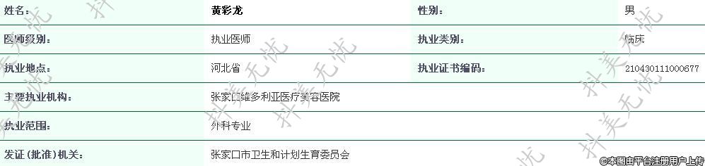 主要執(zhí)業(yè)機(jī)構(gòu):張家口維多利亞醫(yī)療美容醫(yī)院