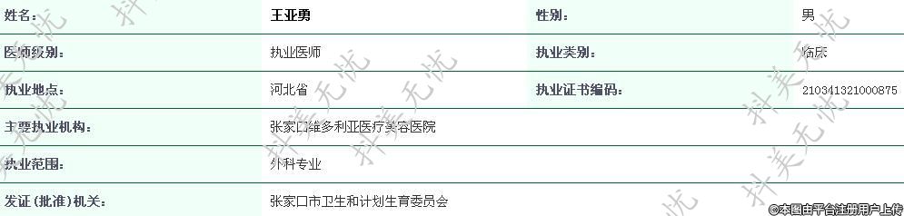 主要執(zhí)業(yè)機構(gòu):張家口維多利亞醫(yī)療美容醫(yī)院