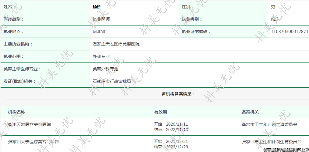 主要執(zhí)業(yè)機(jī)構(gòu):石家莊天宏醫(yī)療美容醫(yī)院