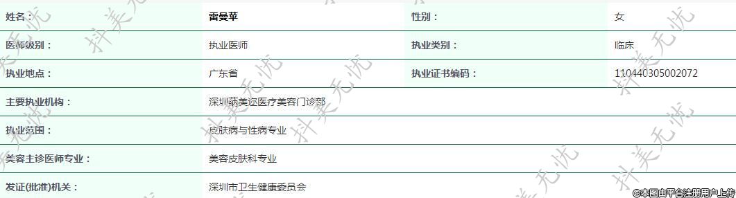 主要執(zhí)業(yè)機(jī)構(gòu):深圳蒳美邇醫(yī)療美容門(mén)診部