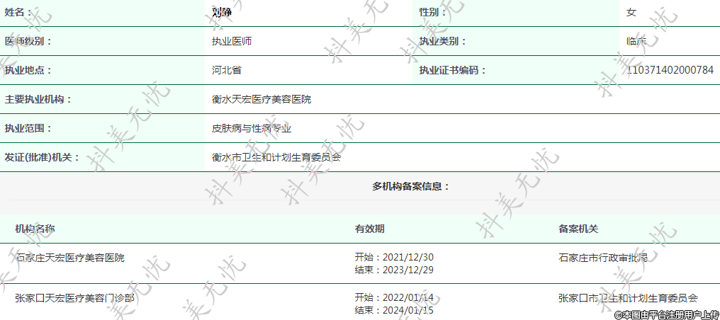主要執(zhí)業(yè)機構:衡水天宏醫(yī)療美容醫(yī)院