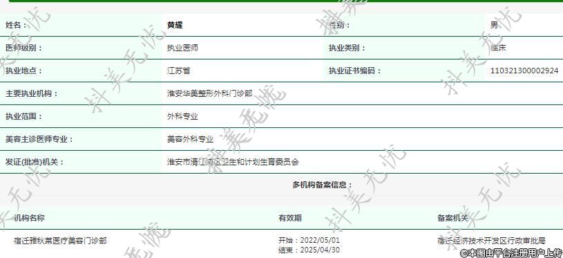 主要執(zhí)業(yè)機(jī)構(gòu):淮安華美整形外科門(mén)診部