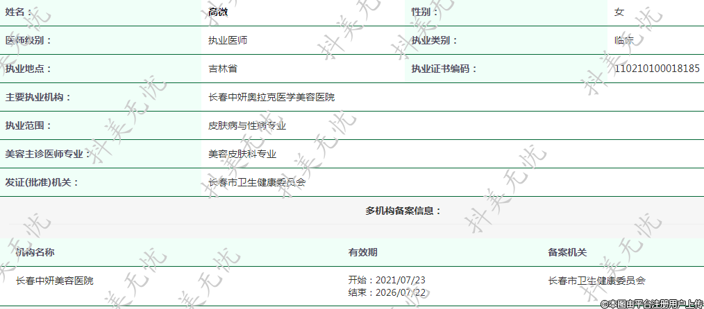 主要執(zhí)業(yè)機構:長春中妍奧拉克醫(yī)學美容醫(yī)院