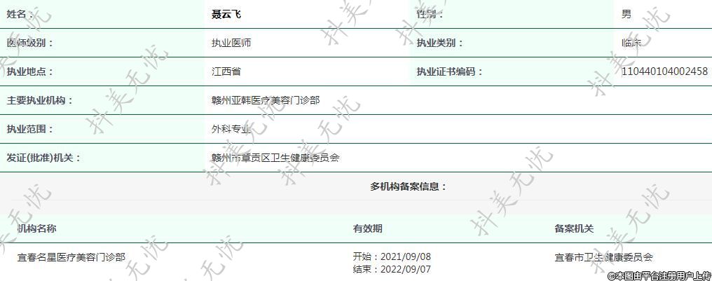 主要執(zhí)業(yè)機(jī)構(gòu):贛州亞韓醫(yī)療美容門診部