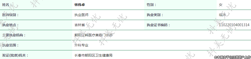 現(xiàn)任朝陽正韓醫(yī)療美容執(zhí)業(yè)醫(yī)師