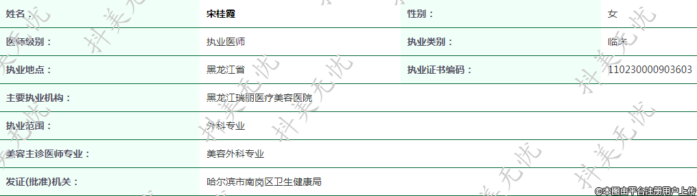 主要執(zhí)業(yè)機(jī)構(gòu):黑龍江瑞麗醫(yī)療美容醫(yī)院
