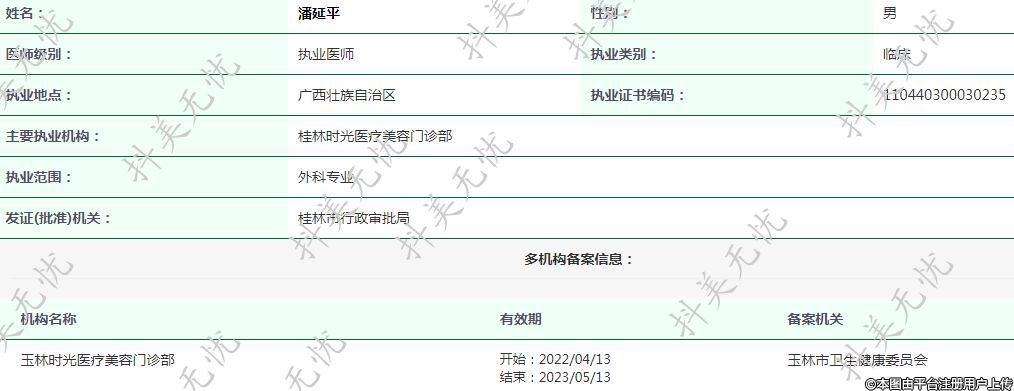 主要執(zhí)業(yè)機(jī)構(gòu):桂林時(shí)光醫(yī)療美容門(mén)診部