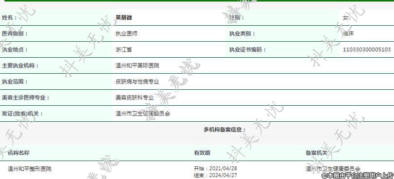 主要執(zhí)業(yè)機構:溫州和平國際醫(yī)院