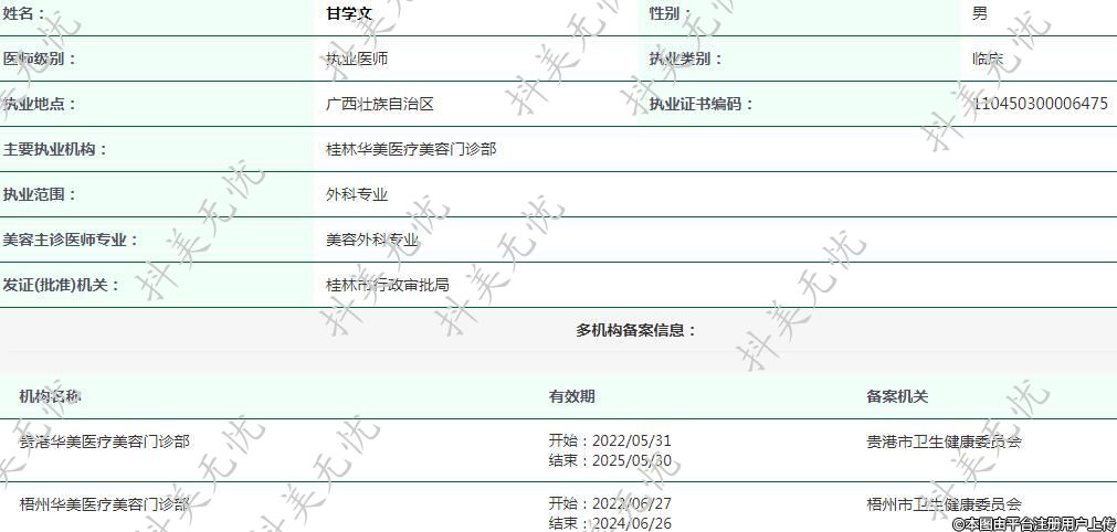 主要執(zhí)業(yè)機(jī)構(gòu):桂林華美醫(yī)療美容門(mén)診部
