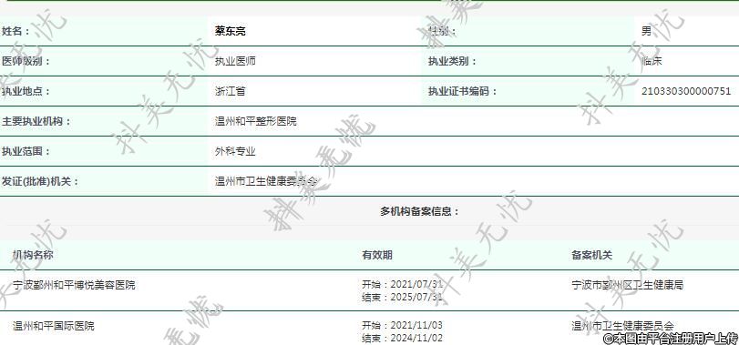 主要執(zhí)業(yè)機(jī)構(gòu):溫州和平整形醫(yī)院