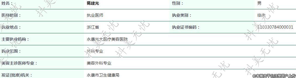 主要執(zhí)業(yè)機(jī)構(gòu):永康光大醫(yī)療美容醫(yī)院