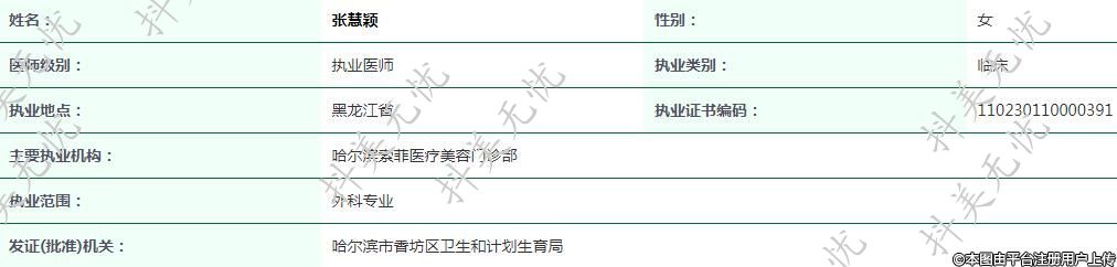 主要執(zhí)業(yè)機構(gòu):哈爾濱索菲醫(yī)療美容門診部