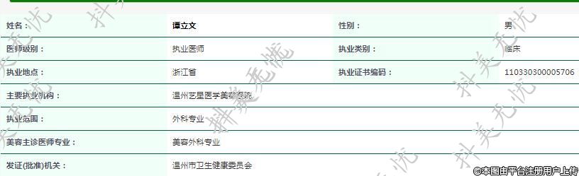 主要執(zhí)業(yè)機(jī)構(gòu):溫州藝星醫(yī)學(xué)美容醫(yī)院