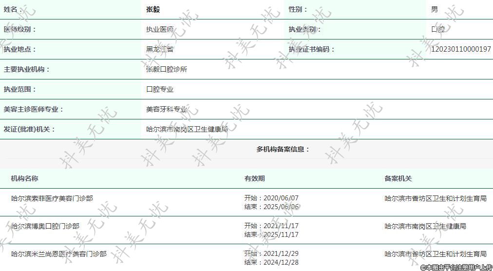 主要執(zhí)業(yè)機構(gòu):張毅口腔診所