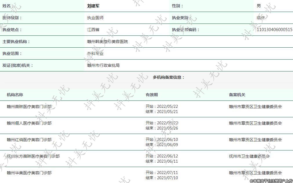 主要執(zhí)業(yè)機(jī)構(gòu):贛州韓美整形美容醫(yī)院