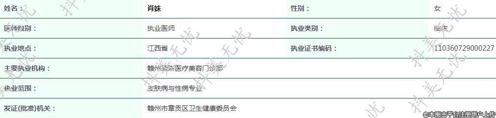 執(zhí)業(yè)范圍:皮膚病與性病專業(yè)