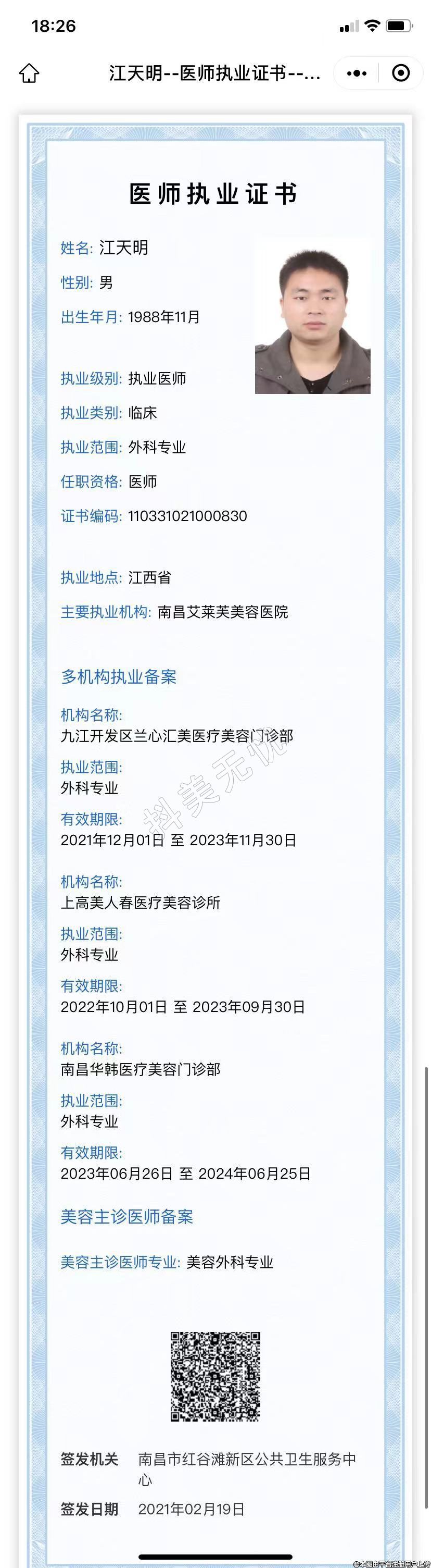 主要執(zhí)業(yè)機(jī)構(gòu): 南昌艾萊芙美容醫(yī)院