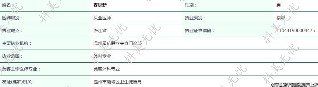 主要執(zhí)業(yè)機構(gòu):溫州星范醫(yī)療美容門診部