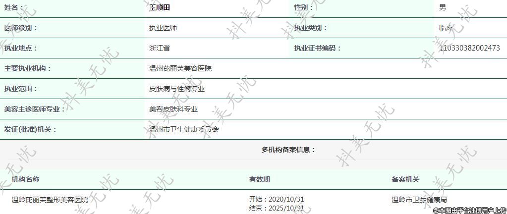主要執(zhí)業(yè)機構(gòu):溫州芘麗芙美容醫(yī)院
