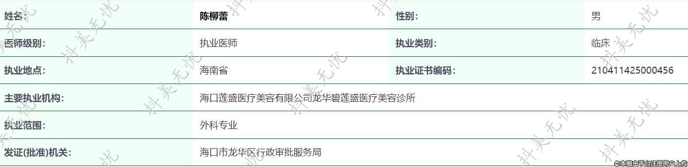 主要執(zhí)業(yè)機(jī)構(gòu):??谏徥⑨t(yī)療美容有限公司龍華碧蓮盛醫(yī)療美容診所