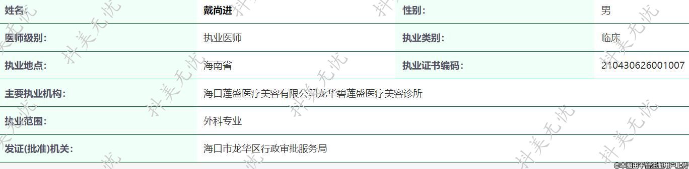 主要執(zhí)業(yè)機構:海口蓮盛醫(yī)療美容有限公司龍華碧蓮盛醫(yī)療美容診所