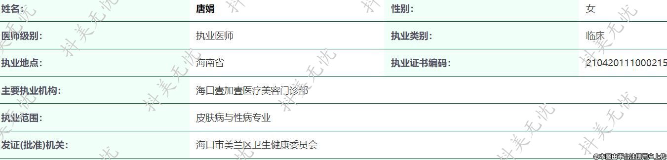 主要執(zhí)業(yè)機構:??谝技右坚t(yī)療美容門診部