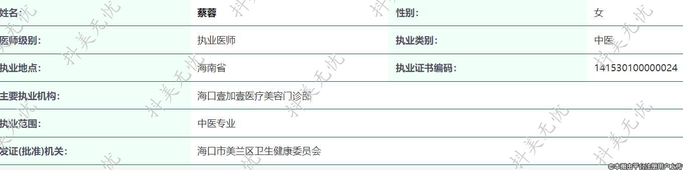 主要執(zhí)業(yè)機構(gòu):海口壹加壹醫(yī)療美容門診部