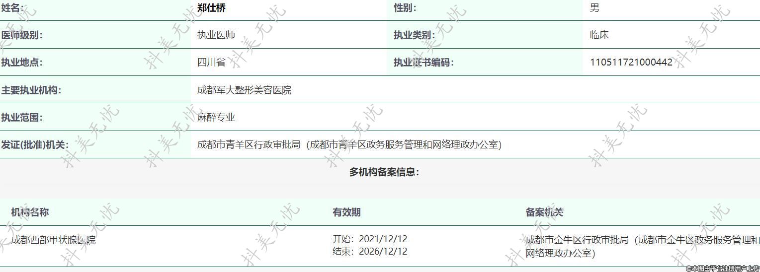 主要執(zhí)業(yè)機(jī)構(gòu):成都軍大整形美容醫(yī)院
