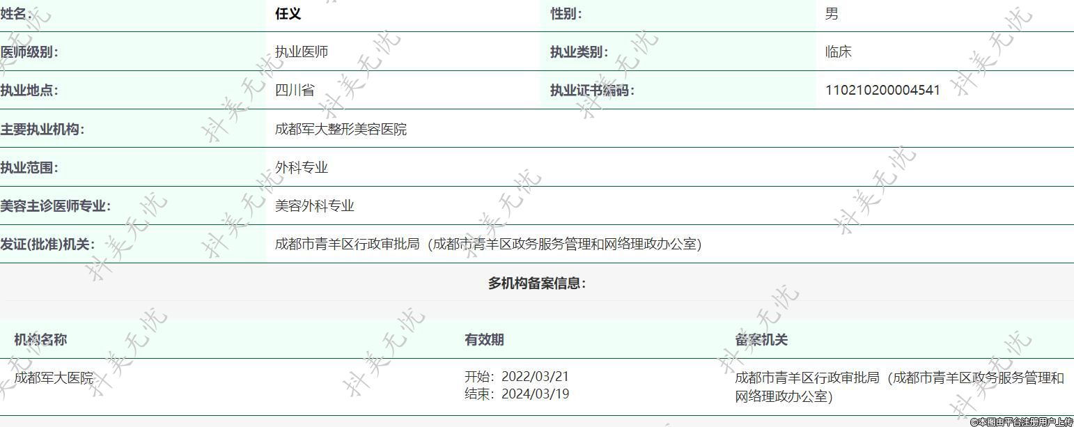 主要執(zhí)業(yè)機構(gòu):成都軍大整形美容醫(yī)院