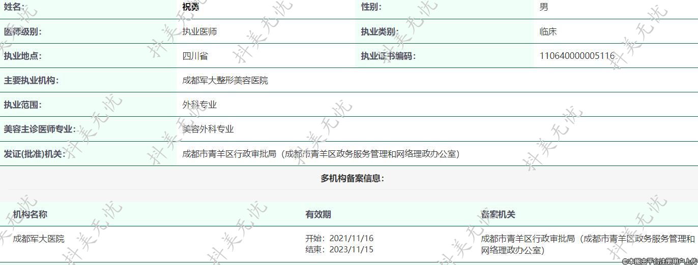 主要執(zhí)業(yè)機(jī)構(gòu):成都軍大整形美容醫(yī)院