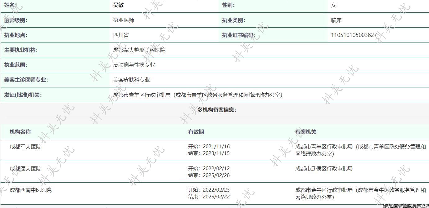 主要執(zhí)業(yè)機構(gòu):成都軍大整形美容醫(yī)院