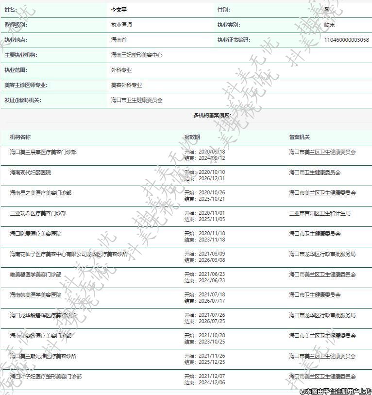 主要執(zhí)業(yè)機構:海南王妃整形美容中心