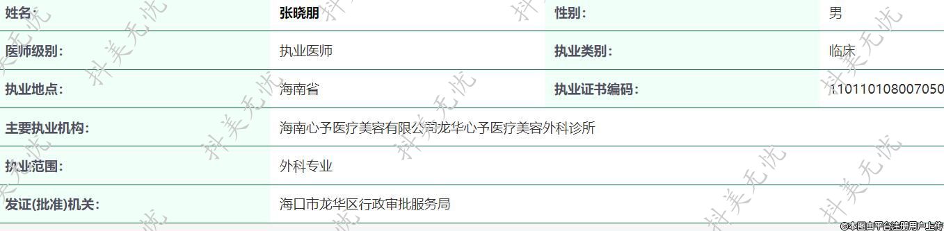主要執(zhí)業(yè)機(jī)構(gòu):海南心予醫(yī)療美容有限公司龍華心予醫(yī)療美容外科診所