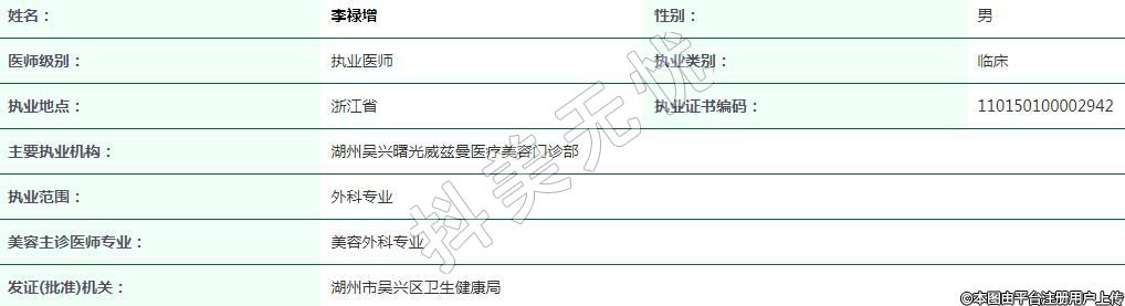主要執(zhí)業(yè)機(jī)構(gòu):湖州吳興曙光威茲曼醫(yī)療美容門(mén)診部