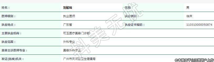 主要執(zhí)業(yè)機(jī)構(gòu):可玉醫(yī)療美容門診部