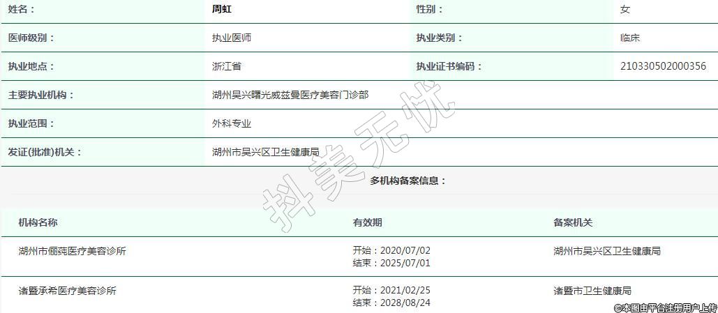 主要執(zhí)業(yè)機(jī)構(gòu):湖州吳興曙光威茲曼醫(yī)療美容門診部