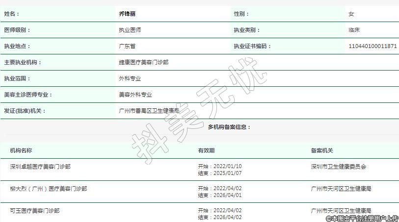 主要執(zhí)業(yè)機(jī)構(gòu):捷康醫(yī)療美容門診部