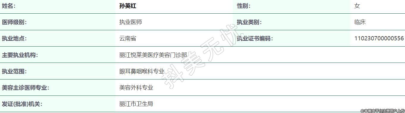 主要執(zhí)業(yè)機(jī)構(gòu):麗江悅?cè)R美醫(yī)療美容門(mén)診部