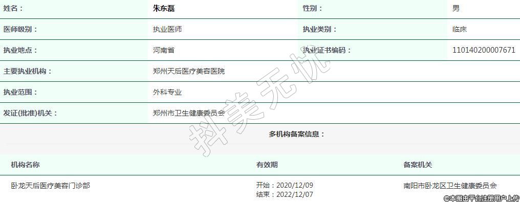主要執(zhí)業(yè)機(jī)構(gòu):鄭州天后醫(yī)療美容醫(yī)院